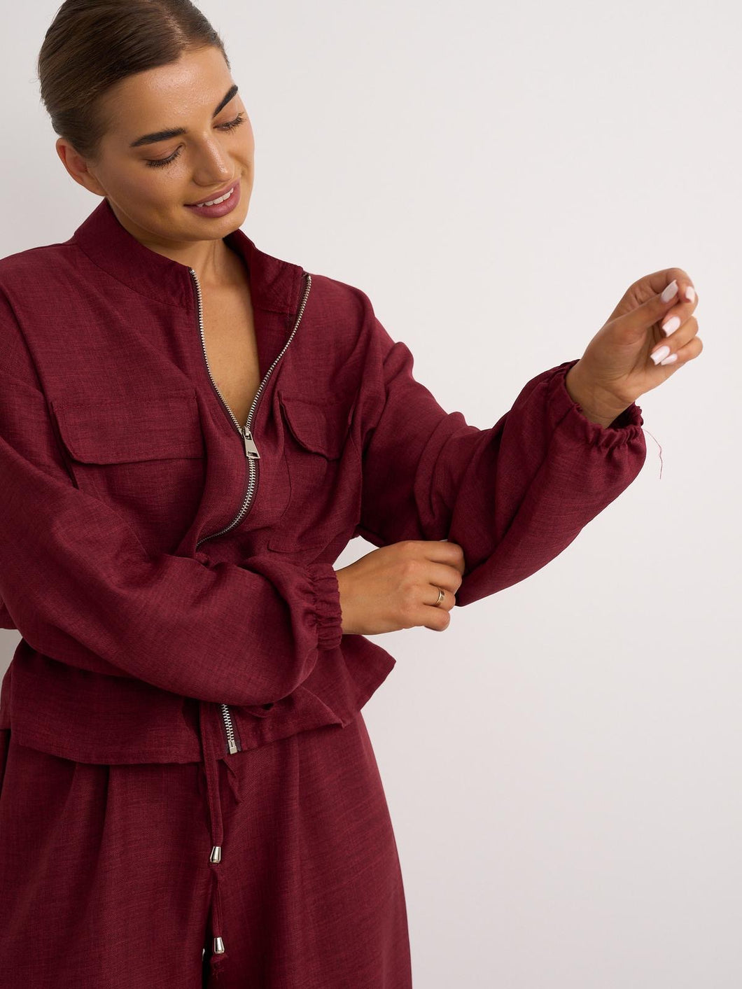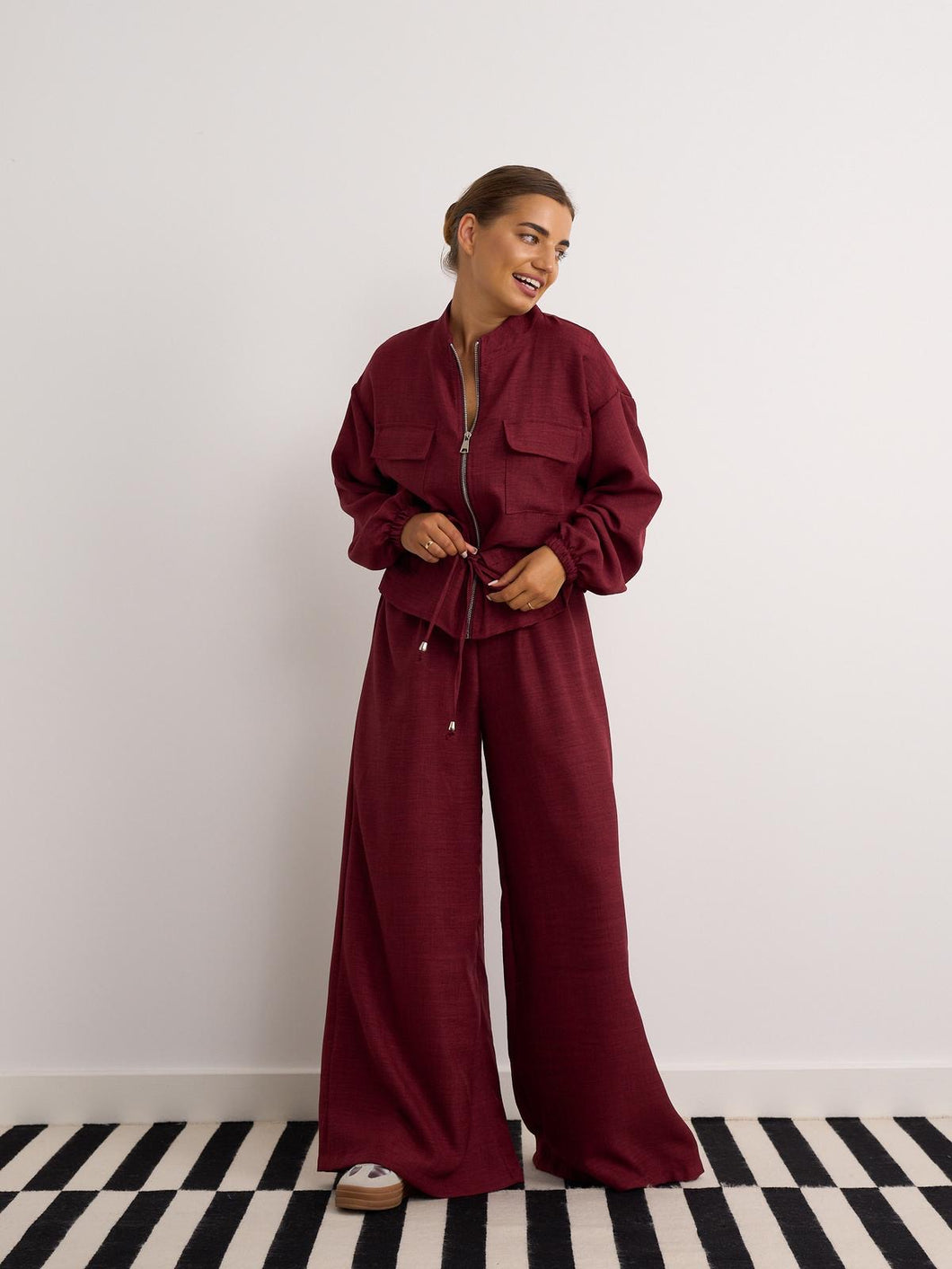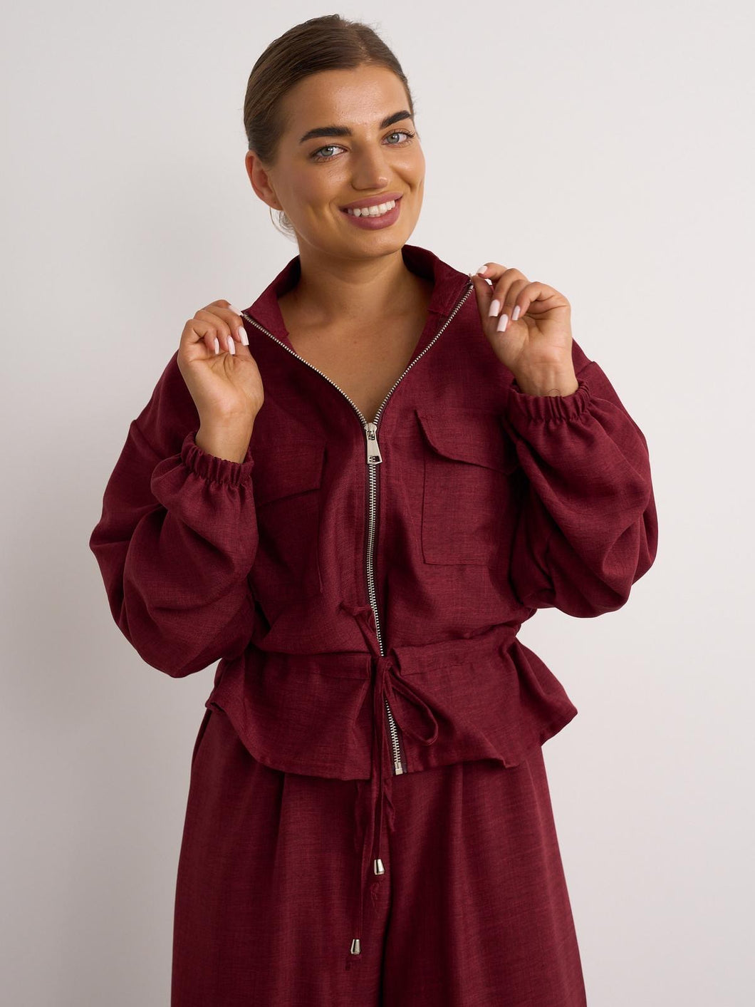 Elevate your everyday style with our stunning burgundy cord co-ord. Designed in a rich, deep burgundy hue, this set features: