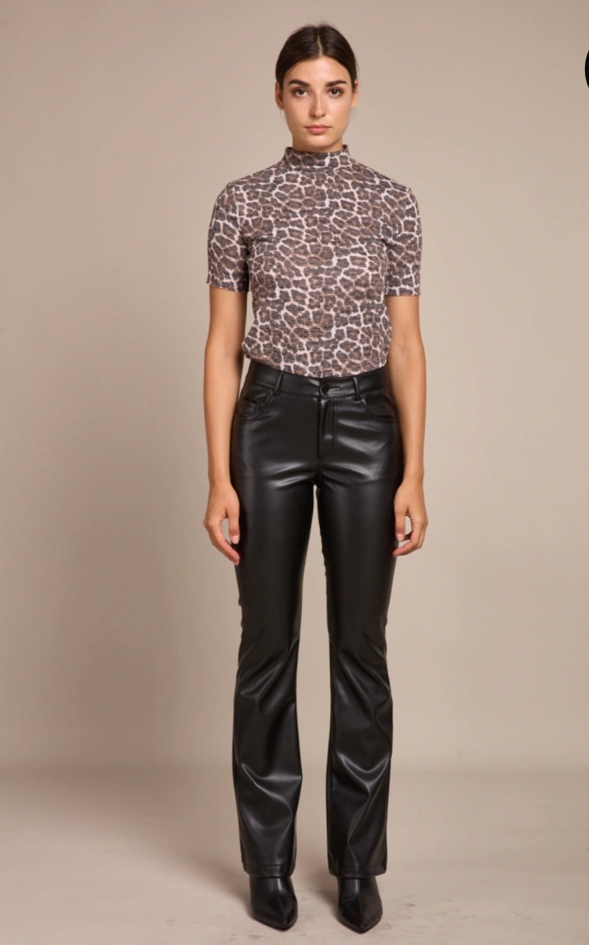 Faux Leather Flared Trousers